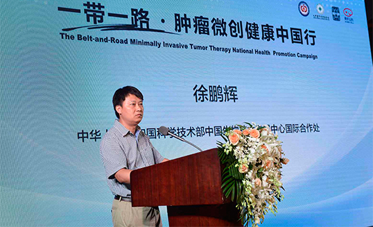中华人民共和国科学技术部中国生物技术发展中心国际合作处领导徐鹏辉在致辞中充分肯定了本次活动在推动肿瘤治疗技术的发展,造福百姓的突出作用。他表示,国家肿瘤微创联盟此次发起的“一带一路肿瘤微创健康行”符合国家“一带一路”战略发展精神,是在微创治疗领域国家战略层面上的新举措,可促进微创消融技术惠及沿线国家患者,同时带动我国微创诊疗装备创新与发展走向国际市场,为我国的“一带一路”战略做出积极贡献。