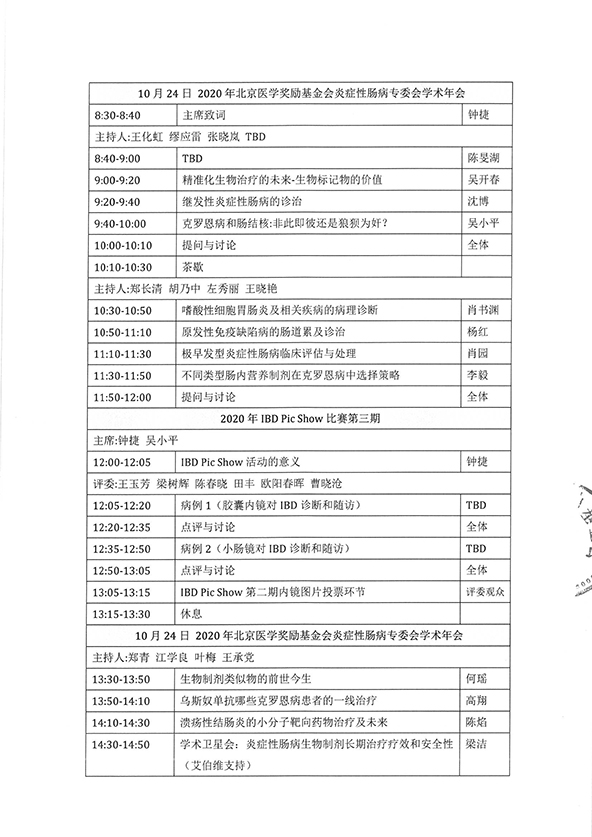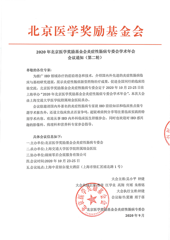 2020年北京医学奖励基金会炎症性肠病专委会学术年会-会议通知