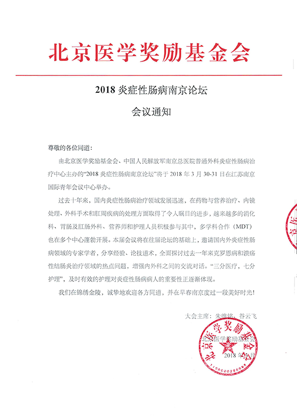 2018炎症性肠病南京论坛项目会议通知