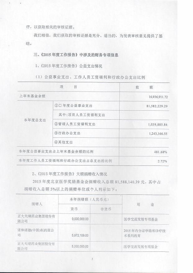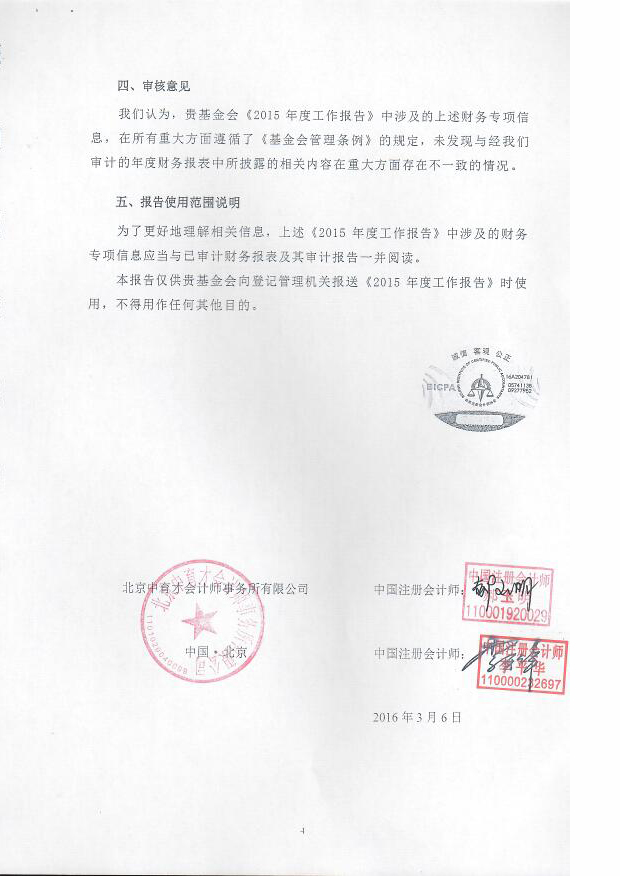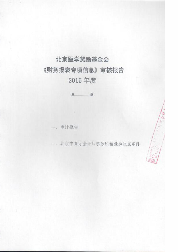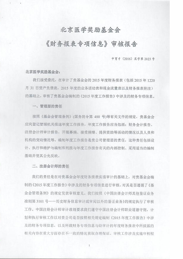 2015年度北京医学奖励基金会《财务报表专项信息》审核报告